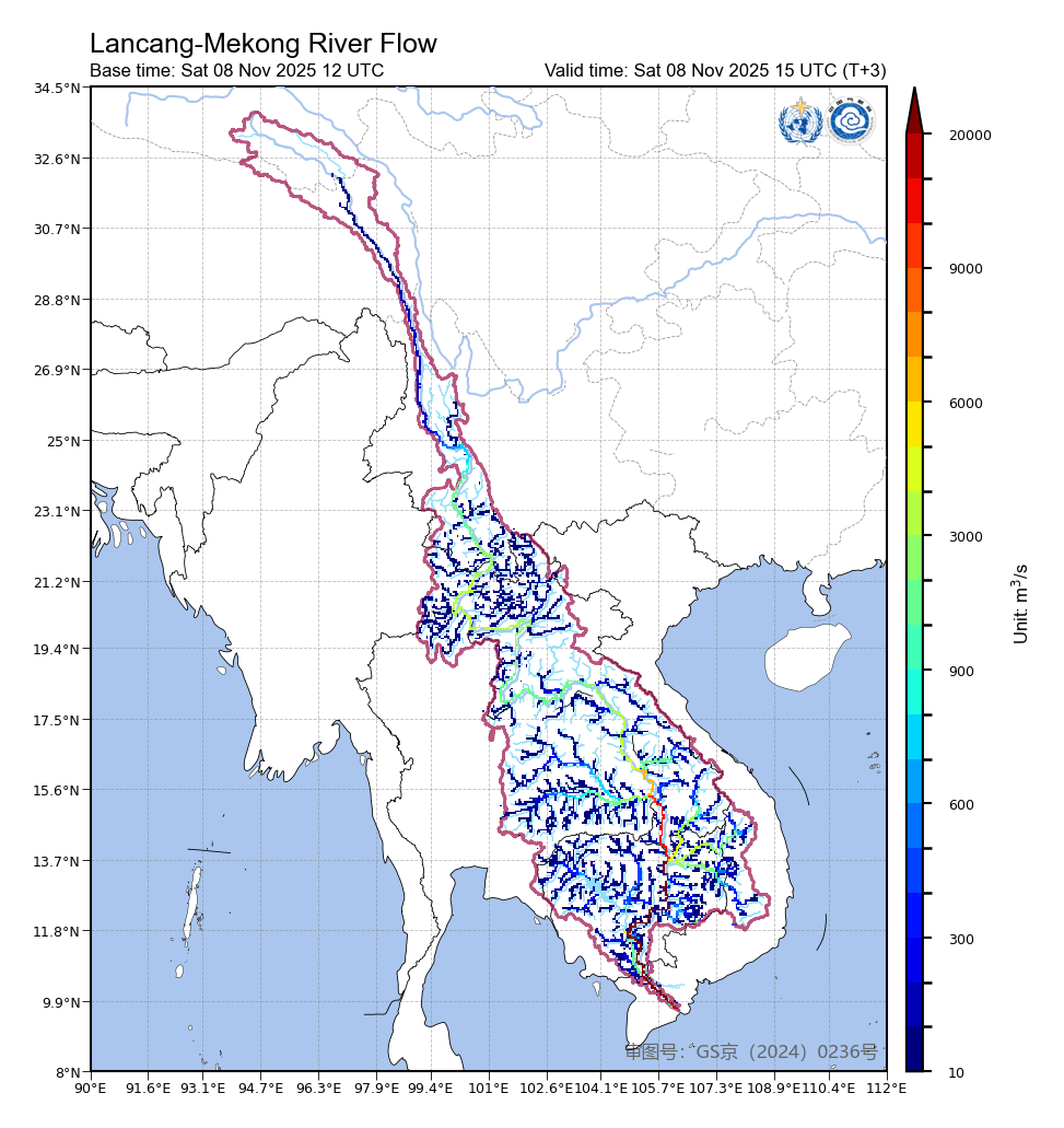 Based on the hydrodynamic model built by the Lancang-Mekong Basin Meteorological Integrated Service Sharing Platform, historical observation data and three-hour refined grid forecast data for the next 10 days are used to obtain a 500-meter resolution flood area and flood depth forecast for the next 10 days. Flood return period and critical rainfall determine the flood risk in the next 10 days.