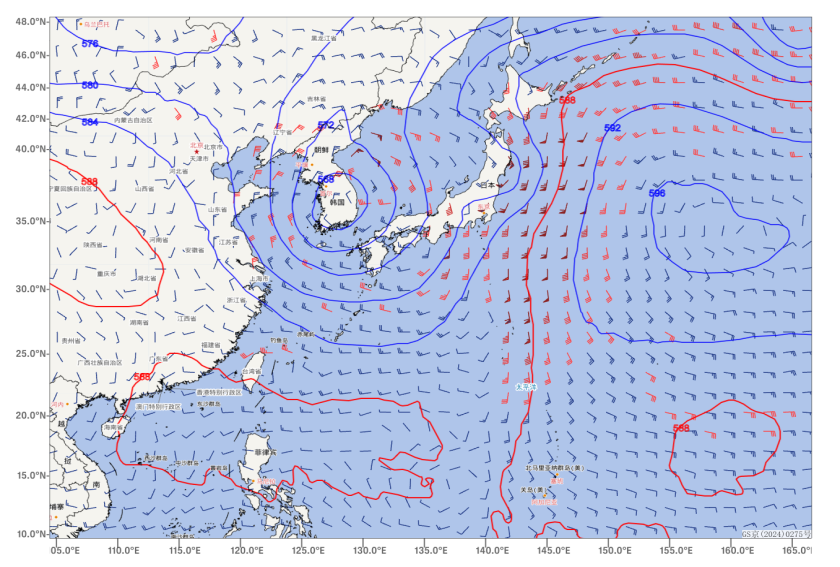 此外,受西太平洋副热带高压和低涡系统共同影响(图3),朝鲜半岛大部、日本中南部部分地区有大到暴雨,局地有大暴雨,并伴有短时强降水、雷暴大风、冰雹等强对流天气;上述大部地区累计降水量有60~100毫米,部分地区100~150毫米,其中,朝鲜咸镜北道、韩国庆尚北道和全罗北道、日本中部等地局地可达200毫米以上(图4)。