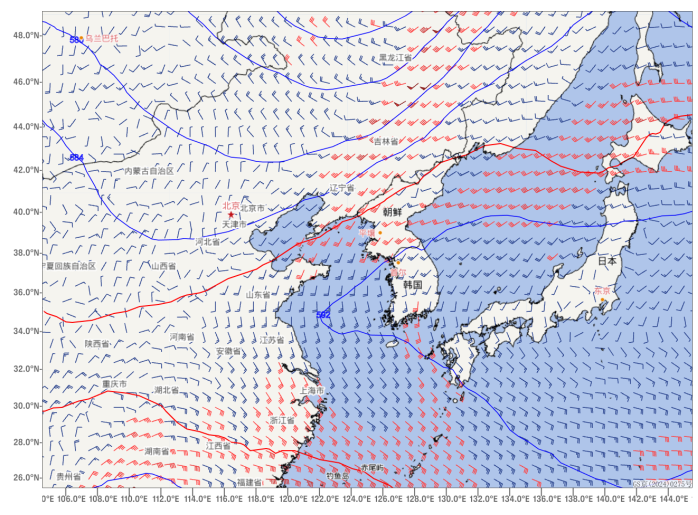 此外,18–21日,受东移冷空气和西太平洋副热带高压共同影响(图3),朝鲜半岛大部以及日本北海道部分地区有大到暴雨,局地有大暴雨,并伴有短时强降水、雷暴大风、冰雹等强对流天气;上述大部地区累计降水量有30~60毫米,部分地区80~120毫米(图4)。