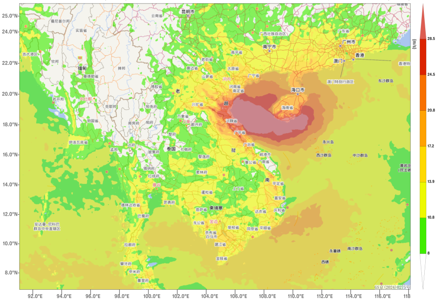 受第13号台风“剑鱼”的影响(图1),预计8月24日-25日,越南中北部将有中到大雨,其中,安沛省、富寿省、和平省、河西省、河南省、太平省、南定省、宁平省、清化省、义安省、河静省、广平省、广治省等地局地有暴雨或大暴雨;上述大部地区累计降水量50~90毫米,部分地区100~180毫米,局地超过280毫米(图2)。越南中北部沿海将有7-8级大风,阵风可达9-10级(图3)。另外,老挝、泰国北部等地也将有大到暴雨,老挝中部局地有大暴雨。
