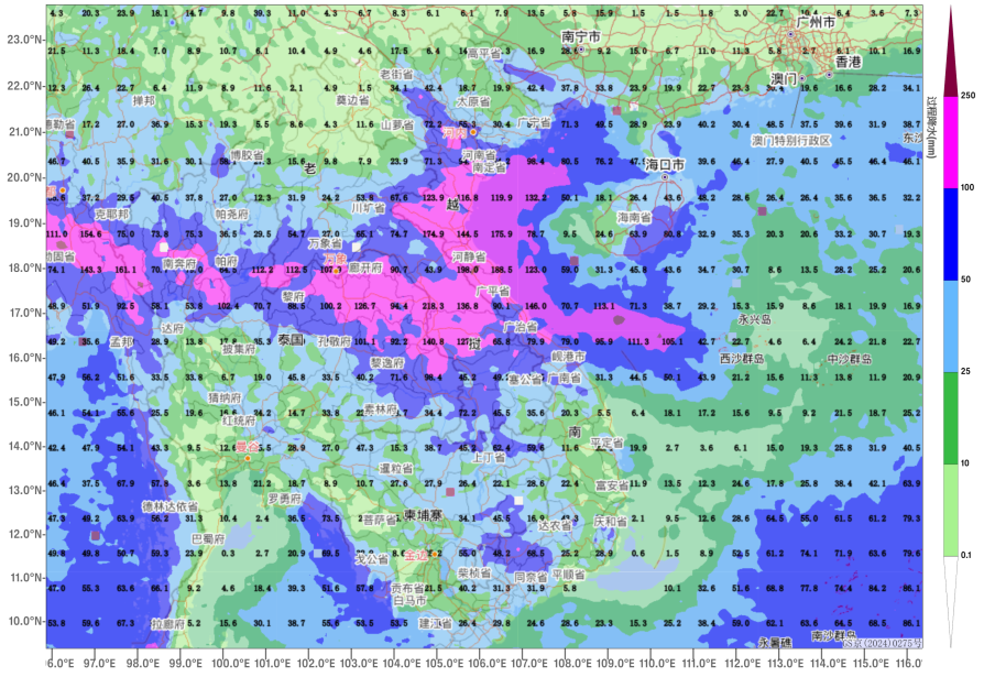 图2 2025年8月29–31日越南等地累计降水量预报(单位:mm)