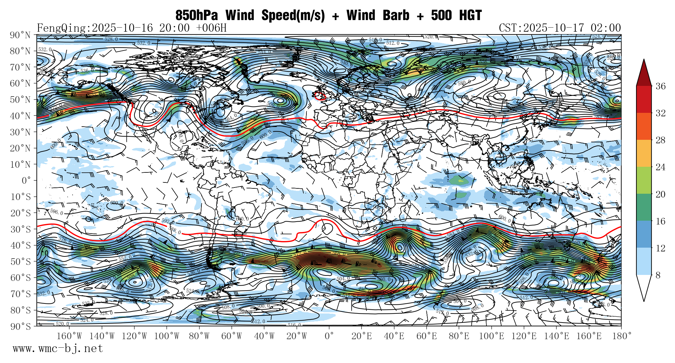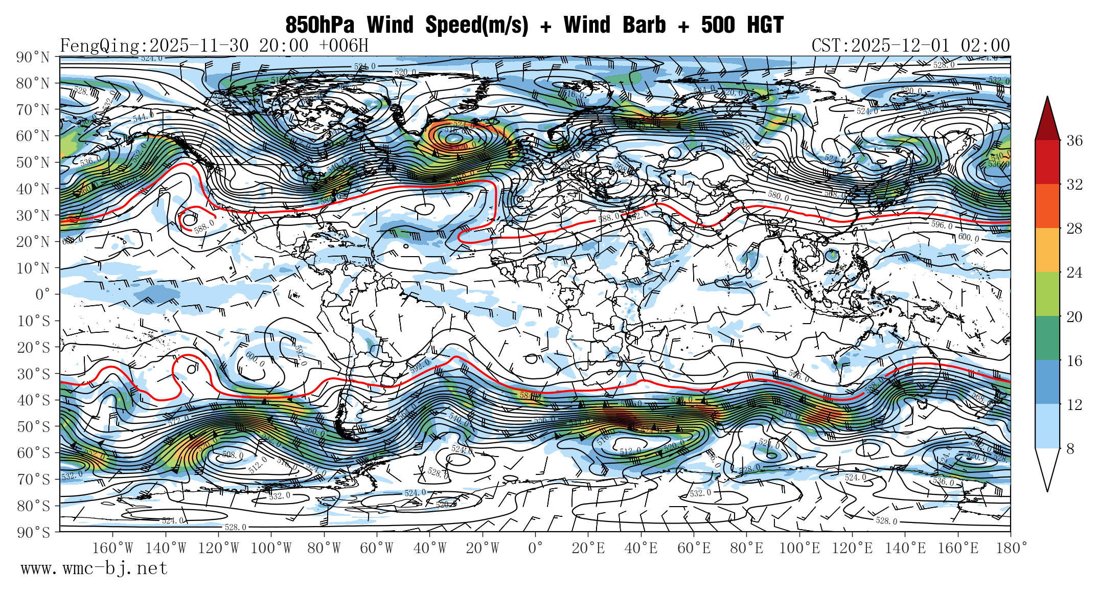 850hPa Wind Speed(m/s) + Wind Barb + 500 HGT