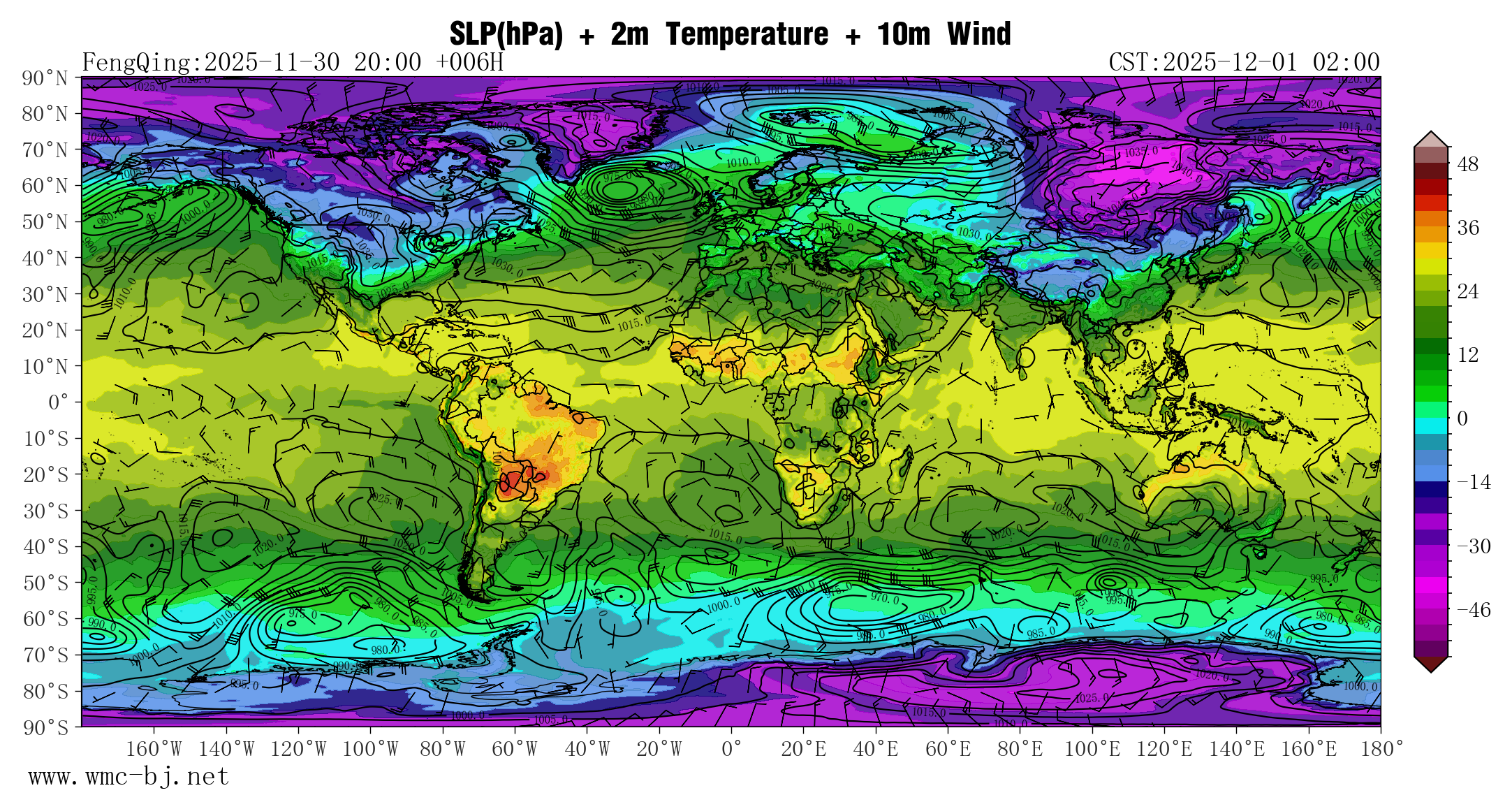 SLP(hPa) + 2m Temperature + 10m Wind
