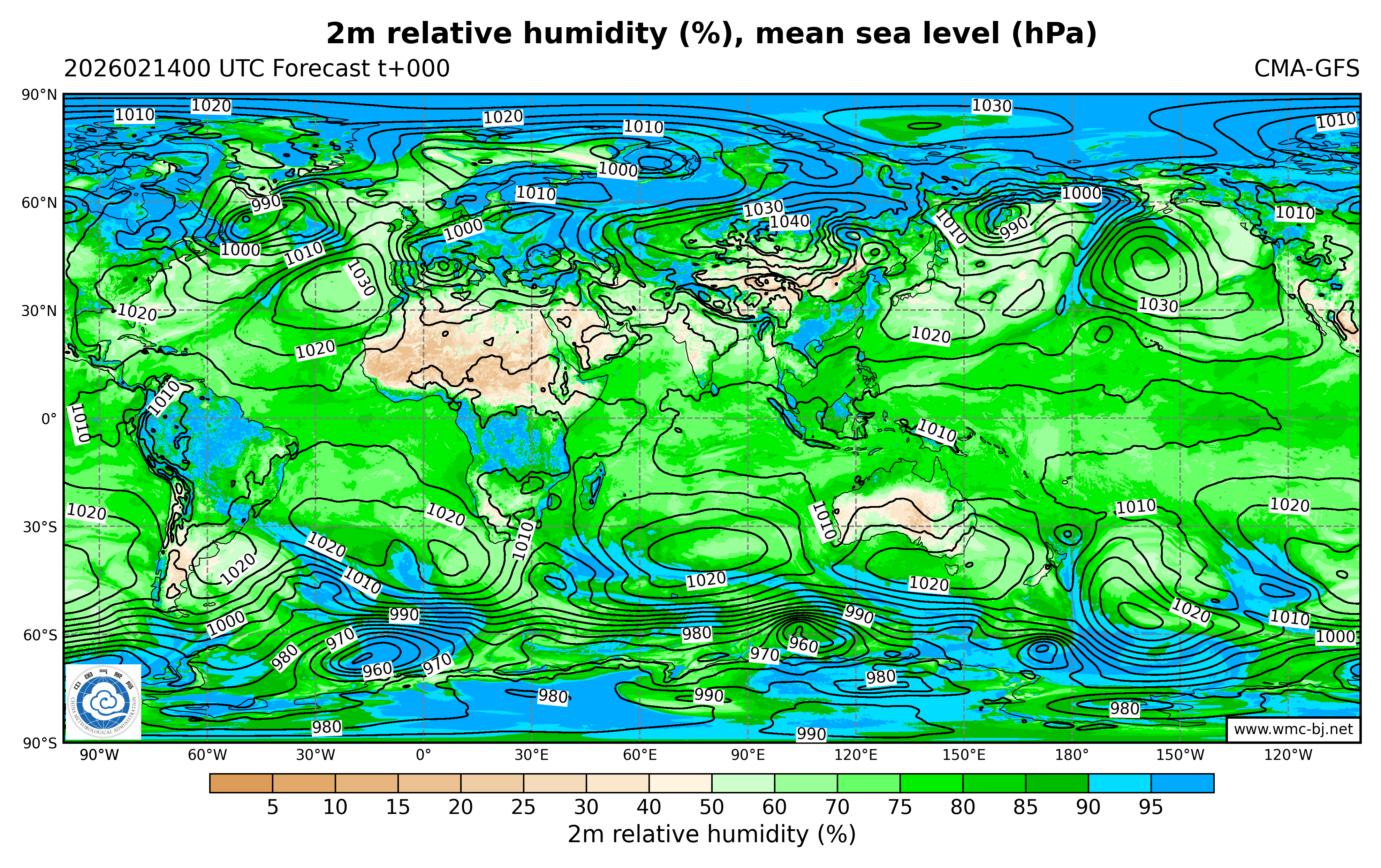 2m relative humidity,mean sea level