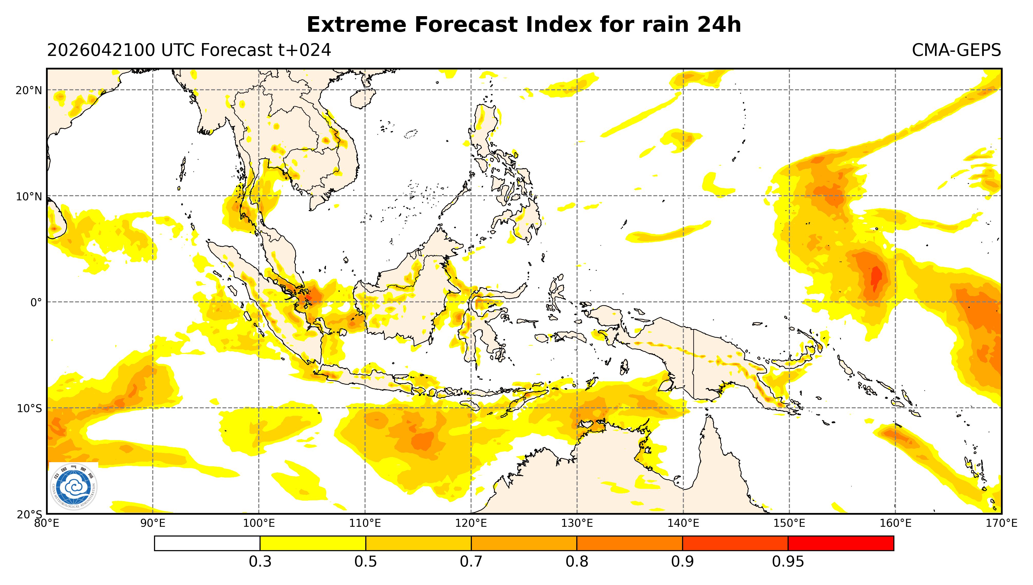 - Extreme Forecast Index for 24-hour accumulated precipitation