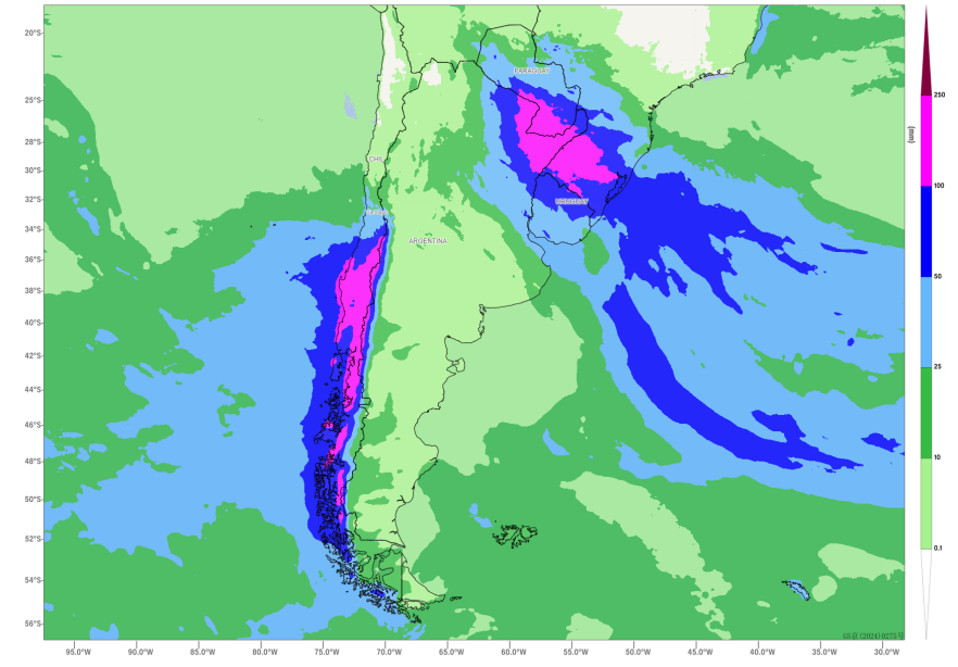 Heavy Rainfall Expected in Chile, Argentina and Surrounding Regions