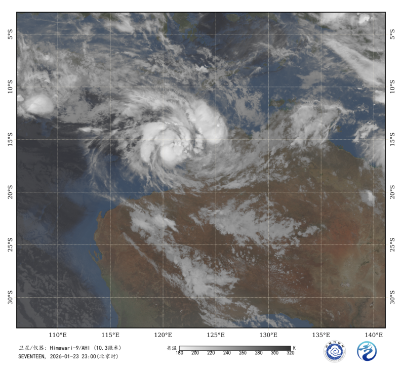 Tropical Cyclone "Luana," classified as a Category 1 system, formed over the northwestern waters of Australia on the night of January 23 (Beijing time) (Figure 1). It is expected to move southeastward and make landfall near the coast of the Dampier Peninsula in northwestern Australia around 14:00 on January 24 (Beijing time). After landfall, Luana will continue its southeastward trajectory, moving further inland.