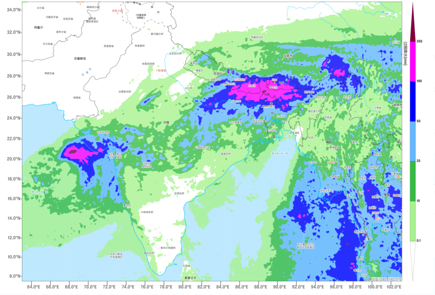 From October 30 to November 1 (UTC), influenced by the residual circulation of the weakened Cyclonic Storm "Monsa" in the Bay of Bengal, parts of central and eastern India, northern India, eastern Nepal, northwestern Bangladesh, and Bhutan are expected to experience moderate to heavy rainfall, with some areas facing torrential rain and localized extremely heavy downpours. The cumulative rainfall in most regions is anticipated to reach 50-80 mm, with some areas potentially receiving 120-180 mm, and localized totals exceeding 200 mm. Additionally, affected by the peripheral circulation of a tropical disturbance in the Arabian Sea, the state of Gujarat in India will continue to experience significant rainfall, with coastal areas likely to see heavy to very heavy rain (Figure 1).