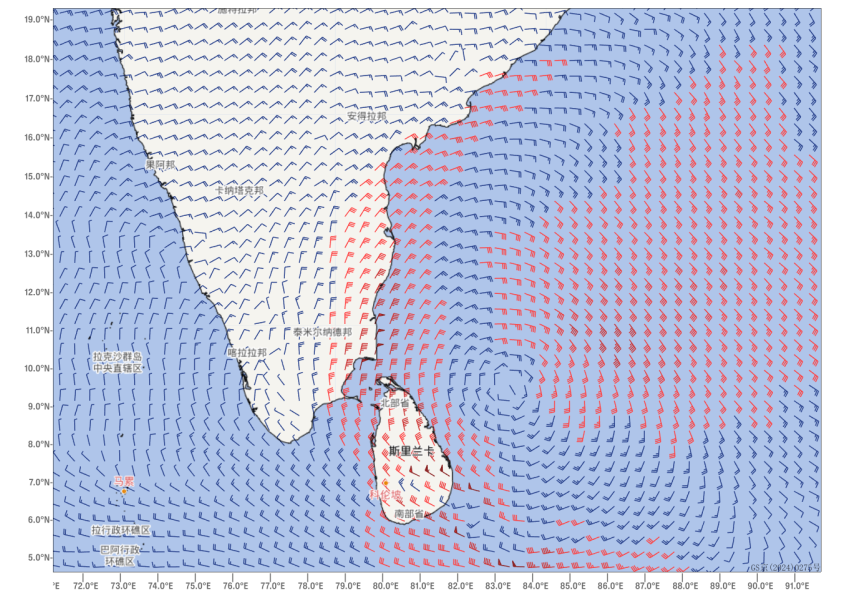 Figure 1: Wind Field at 850 hPa at 0800 BT on November 29, 2024