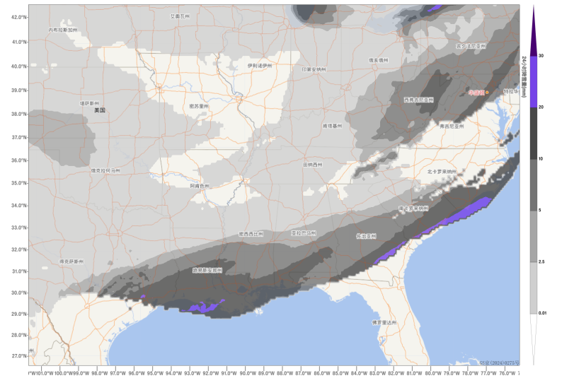 Figure 1. Accumulated snowfall in the southeastern United States from January 19 to 23, 2025 (Beijing time) (Unit: mm)