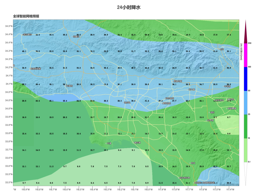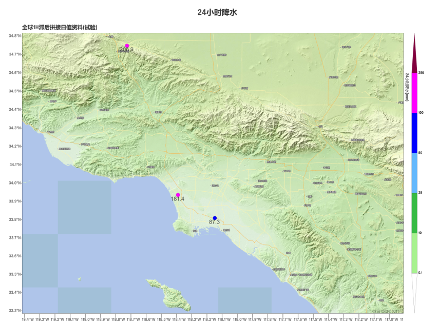 Figure 1. Accumulated precipitation (unit: mm) at the Global Exchange Station in the Los Angeles area from January 25th to 29th, 2025 (Beijing time)