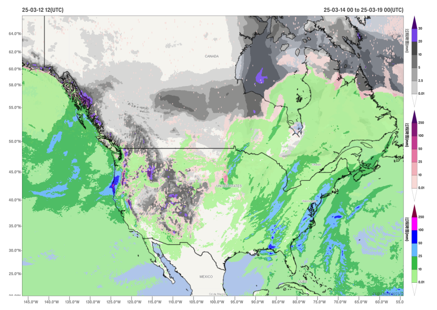 Figure 3: Accumulated precipitation (rain and snow) from March 14 to 18, 2025 (Unit: millimeters)
