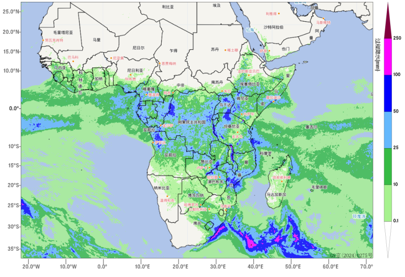 Affected by the circulation system on the edge of the South Atlantic High, most of Central Africa continues to experience frequent rainfall (Figure 1). From April 17 to 19, localized heavy to torrential rain is expected in southern Nigeria, eastern and central-southern Congo, most of the Democratic Republic of Congo, western and northern Tanzania, northeastern Malawi, southeastern Zambia, and central-northern Mozambique, accompanied by severe convective weather. Additionally, heavy to torrential rain, with isolated extreme downpours, is forecasted in southeastern South Africa on the night of April 16. Attention should be given to secondary disasters such as flooding, mudslides, and geological landslides triggered by the intense rainfall.