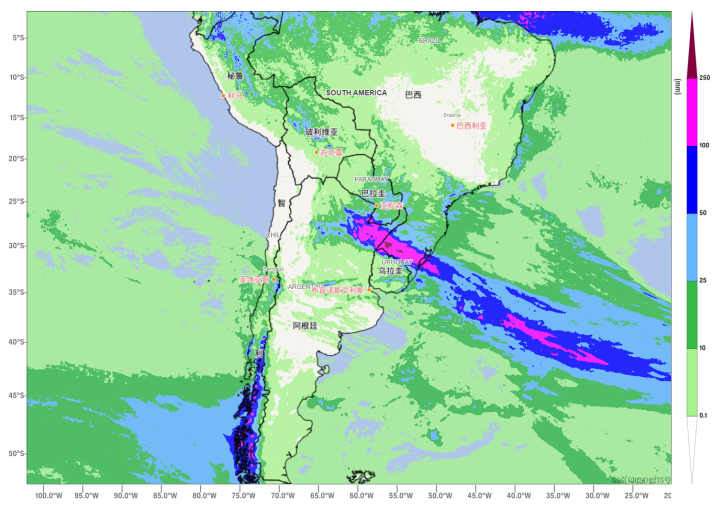 Under the combined influence of an upper-level trough and low-level jet stream (Figure 1), it is expected that from May 8 to 10, regions including northwestern Bolivia, southeastern Paraguay, southern Brazil, northern Uruguay, and northeastern Argentina will experience moderate to heavy rainfall from west to east. Specifically, areas such as Mato Grosso do Sul and S?o Paulo in Brazil, and Corrientes in Argentina, are likely to see torrential or extreme rain, accompanied by short-duration intense rainfall (locally exceeding 60 mm/h), thunderstorms, strong winds, or hail. Total precipitation is expected to reach 30–60 mm in most affected regions, with 80–150 mm in some areas and locally up to 250 mm (Figure 2).