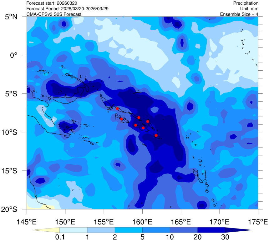 • 10-day rolling precipitation distribution