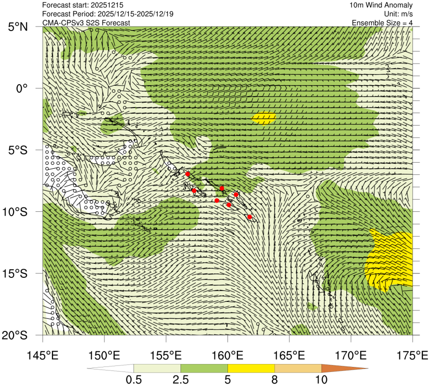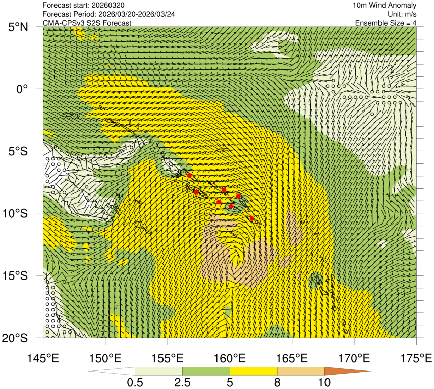 • 5-day rolling 10m wind field and the distribution of wind speed anomaly