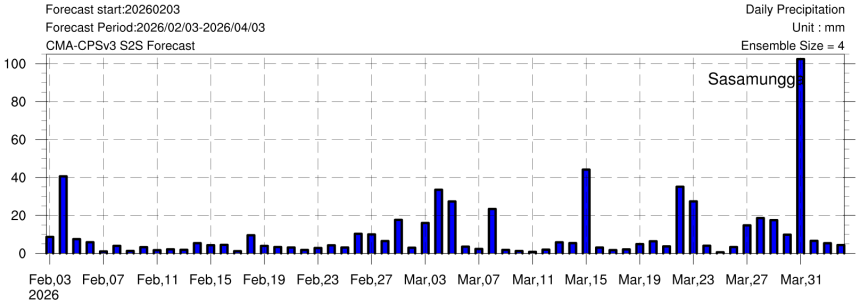 • 10-day rolling precipitation distribution