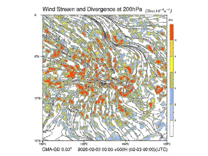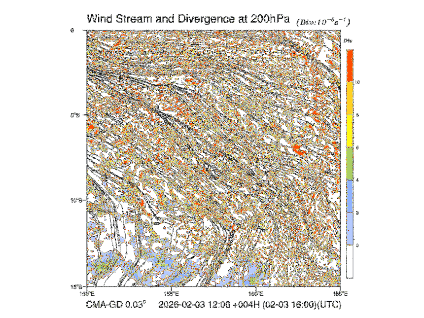 Wind Stream and Divergence at 200hPa
