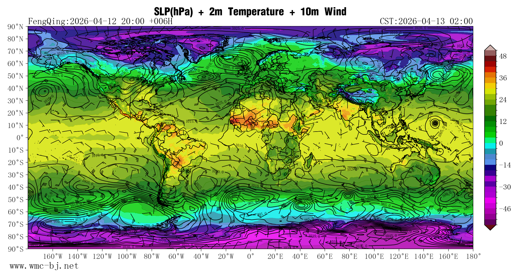 SLP(hPa) + 2m Temperature + 10m Wind