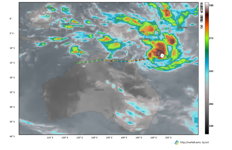 At 14:00 Beijing Time on March 17, Tropical Cyclone "Narelle" formed near the waters of Australia. Following its formation, it moved in a west-southwest direction. By 08:00 Beijing Time on March 18, the cyclone reached its peak intensity with maximum sustained winds of 11 levels (equivalent to a Category 2 tropical cyclone) and a central pressure of 984 hPa.