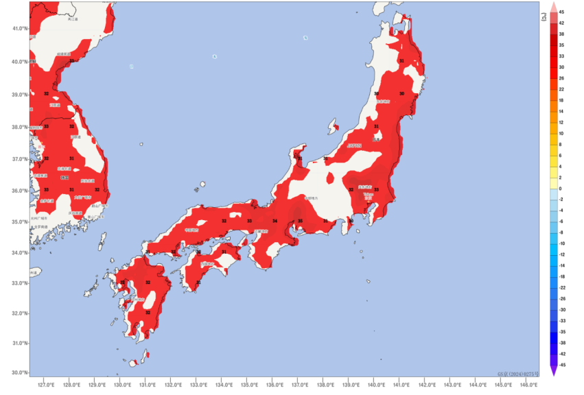 Additionally, under the persistent influence of the subtropical high-pressure system, a prolonged high temperatures is expected in central and southern Japan over the next ten days, with maximum temperatures generally exceeding 32°C. Specifically, the Kinki region and the eastern part of the Tohoku region are forecasted to experience daily highs surpassing 35°C, while the Kanto region and southern parts of the Chubu region may see daily maximum temperatures exceeding 37°C, approaching or surpassing historical records for the same period (Figure 3).