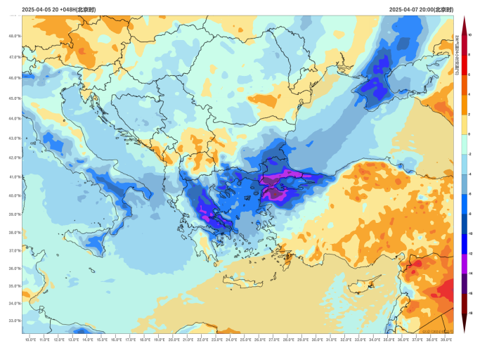 Figure 2: 24-hour Temperature Change at 2 meters above ground level as of 20:00 on April 6, 2025 (Unit: °C)