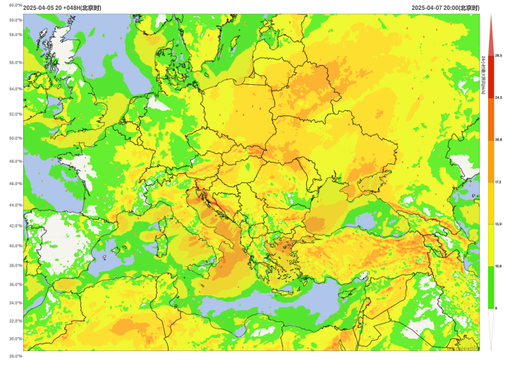 Figure 4: Maximum Gust Wind Speed for 24 Hours at 20:00 on April 7, 2025 (Unit: m/s)