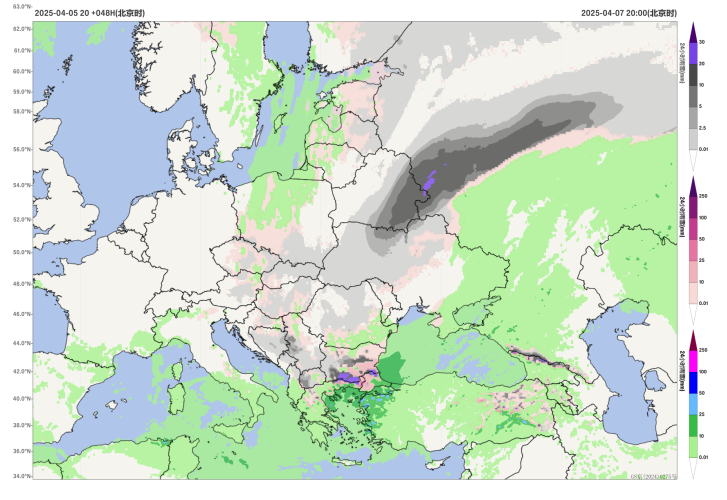Figure 5: Forecast of Accumulated Rain and Snowfall from 20:00 on April 6 to 20:00 on April 7, 2025 (Unit: mm)