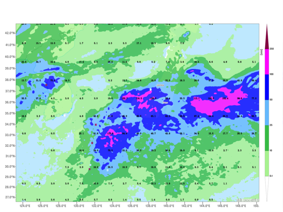 Figure 4 Forecasted Accumulated Precipitation from September 4 to 7, 2025 (Unit: mm)